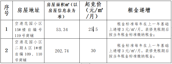 空港花園安置房小區(qū)3間房屋租賃競拍規(guī)則
