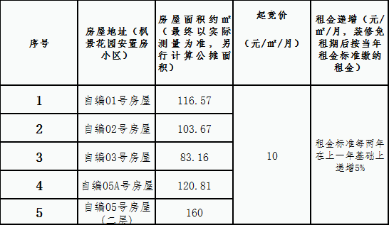 楓景安置房小區(qū)房屋租賃競(jìng)拍公告