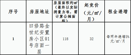 金世紀(jì)安置房小區(qū)店面租賃競拍公告
