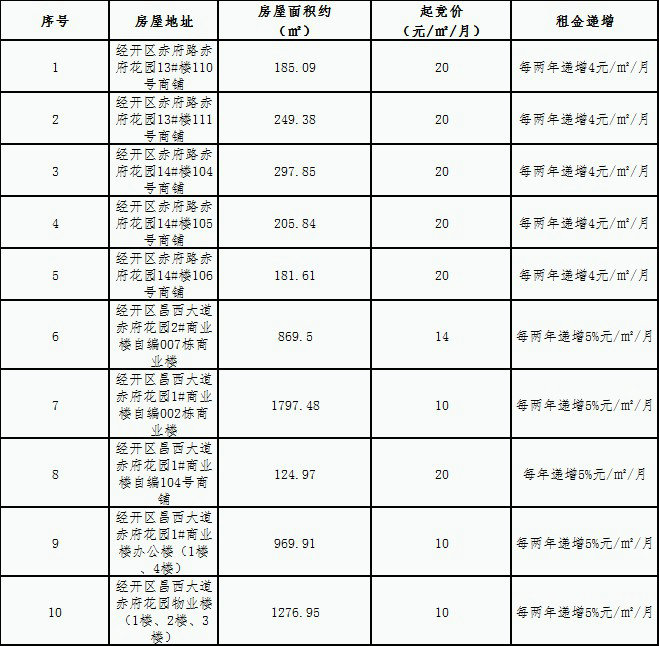赤府花園安置房小區(qū)房屋租賃競拍公告