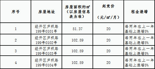 3、根據(jù)房屋信息表編號按順序招租(原則上不隔開租賃),且所有商務(wù)條件均優(yōu)先于承租面積大的承租戶,以繳納相應(yīng)保證金時(shí)間排序。