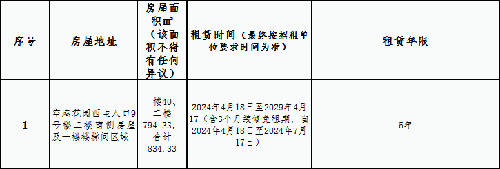 特別說明:(1)本次招租房屋涉及電表,水表、燃氣等需中標人或直接委托人自費自行開戶(包括材料及施工費用),房屋以現(xiàn)狀出租,涉及一切維修改造工程產生的費用(包括但不限于房屋漏水、玻璃破損等)均由中標人自行承擔,消防報建及其它審批手續(xù)中標人自行辦理。