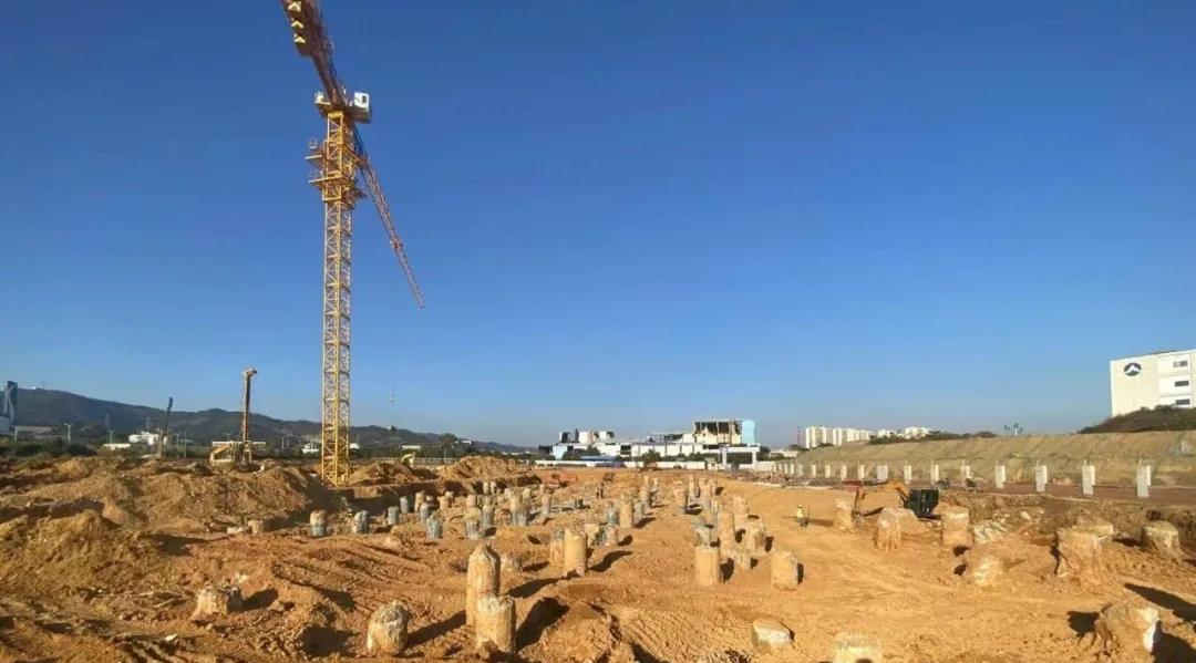 在進行樁基工程施工時,面對現(xiàn)場復(fù)雜多變的地質(zhì)情況以及復(fù)雜的外部環(huán)境,各參建單位迎難而上,攻堅克難,組建突擊隊伍以及進場多臺施工機械,加大施工投入,采取日夜施工,歷時40天,于2020年11月25日完成了所有樁基工程,比原定計劃提前一周時間完成。