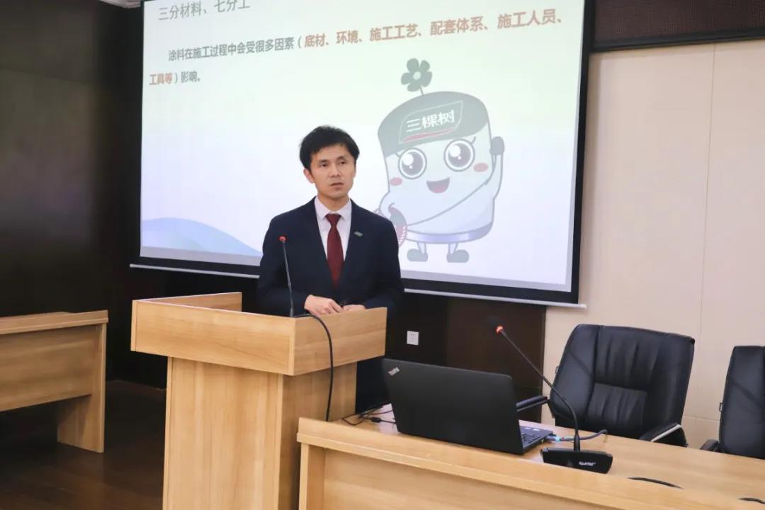 本次培訓(xùn)特邀三棵樹涂料公司游愛軍、鄭俊峰、倪明雄三名專家擔任主講師,三位講師分別從外墻涂料施工工藝、防水工程施工應(yīng)用方案實例分析、地坪漆施工工藝和質(zhì)量管控等方面進行精彩講解;同時結(jié)合集團房建項目建設(shè)過程遇到的實際相關(guān)問題進行了現(xiàn)場交流,對相關(guān)問題進行了原因分析,并為改進項目建設(shè)提供了良好的建議。