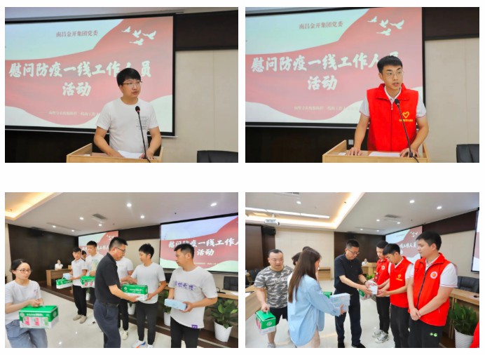 袁扣華代表集團(tuán)黨委、集團(tuán)工會(huì)向大家表達(dá)了誠(chéng)摯的敬意和衷心的感謝,為他們送去了洗手液、口罩等防暑防疫物資。他希望,大家提振精神、激昂斗志、鼓足干勁,堅(jiān)持做好各項(xiàng)本職工作,以更加昂揚(yáng)的姿態(tài)、更加飽滿的激情、更加過硬的本領(lǐng),為金開集團(tuán)的高質(zhì)量發(fā)展繼續(xù)增添力量。