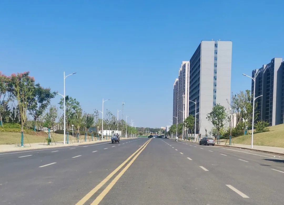 ● 機場路(建業(yè)大道—興業(yè)大道)于2019年3月開工建設(shè)。在項目建設(shè)過程中,金開集團協(xié)同參建各方不懈努力,共同克服了中石化輸油管線遷改、電力、燃氣、給水等重重困難。最終于2022年3月實現(xiàn)道路全線竣工通車,進一步提高和完善了儒樂湖區(qū)域道路交通整體通行能力和服務水平。