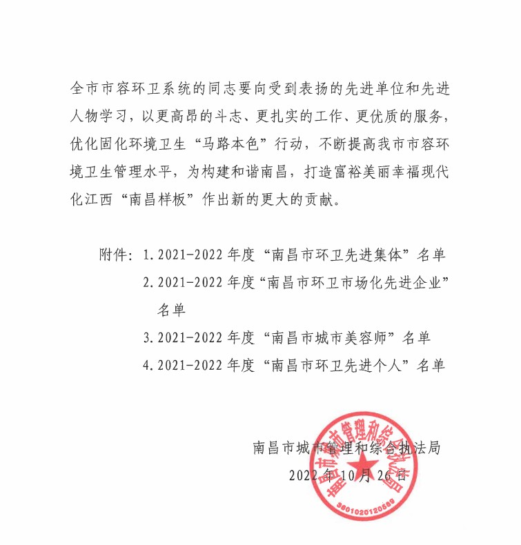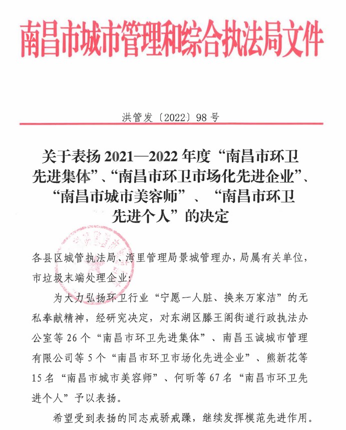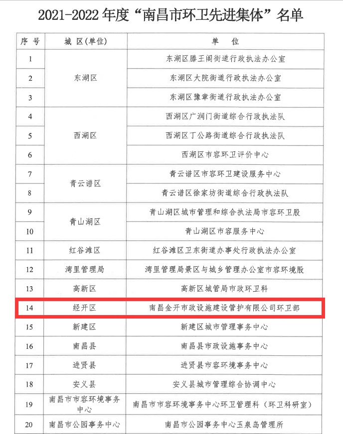 喜報!金開管護公司榮獲“南昌市環(huán)衛(wèi)先進(jìn)集體”稱號