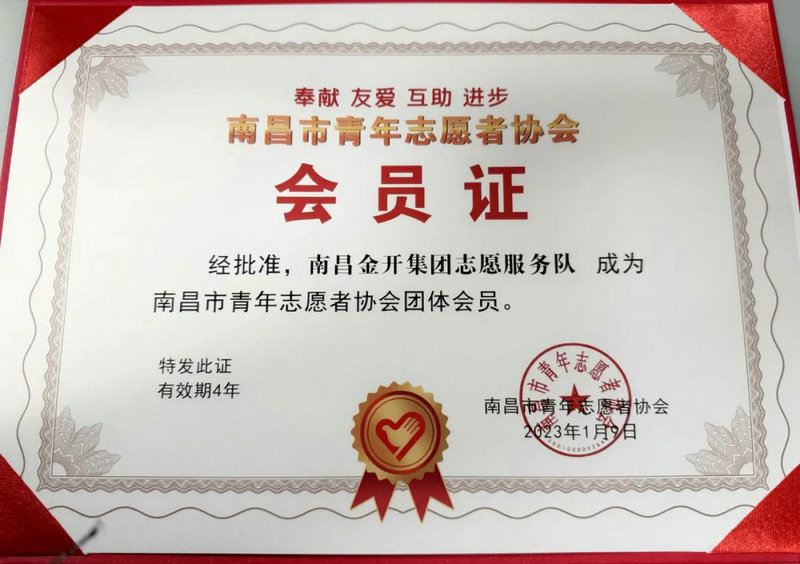 南昌金開集團志愿服務隊成為市青年志愿者協(xié)會團體會員