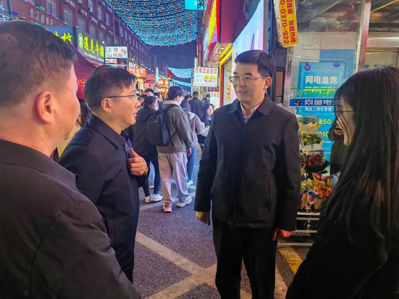 賀敏一行邊走邊看,實地查看了紫荊夜市的環(huán)境秩序和業(yè)態(tài)布局,聽取了夜市運營管理和未來發(fā)展思路的介紹,并就現(xiàn)場商戶經(jīng)營、市民消費等現(xiàn)狀進(jìn)行了細(xì)致的了解,就現(xiàn)場管理工作中挖掘的亮點工作和目前遇到的困難和不足,進(jìn)行了現(xiàn)場協(xié)調(diào)和調(diào)度。
