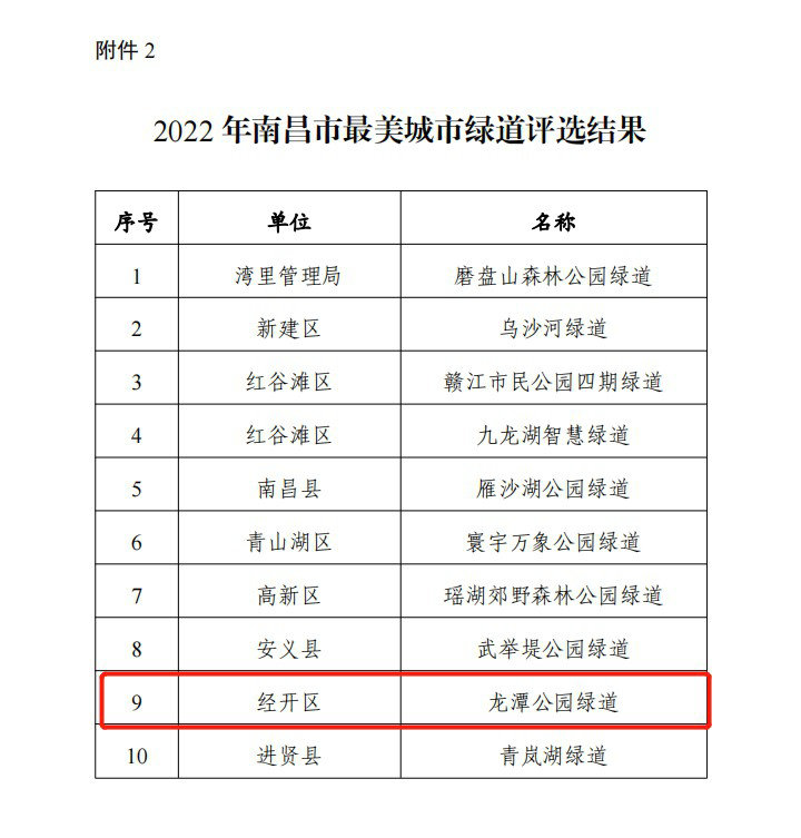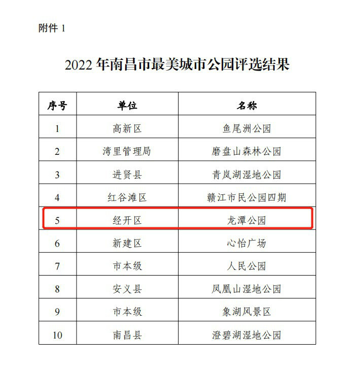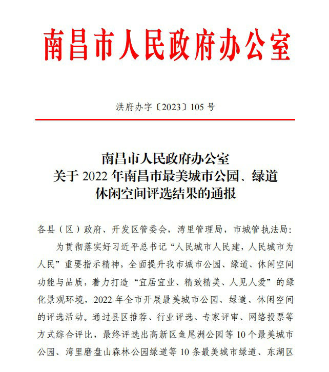 2月28日,南昌市人民政府辦公室發(fā)布《關(guān)于2022年南昌市最美城市公園、綠道休閑空間評(píng)選結(jié)果的通報(bào)》,其中由南昌金開集團(tuán)建設(shè)的龍?zhí)豆珗@(南昌經(jīng)開區(qū)龍?zhí)端坝^提升改造工程)榮獲“最美公園”“最美綠道”榮譽(yù)稱號(hào)!