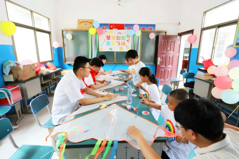 下午2點40分,一到蓮塘小學,金開集團的團員青年們就著手布置活動室,為小朋友們營造“六一”氛圍。布置的過程中,兩位駐塘村青年選調生和蓮塘小學的小朋友們也紛紛加入,大家齊心協(xié)力把活動室裝扮地五彩繽紛、童趣盎然。