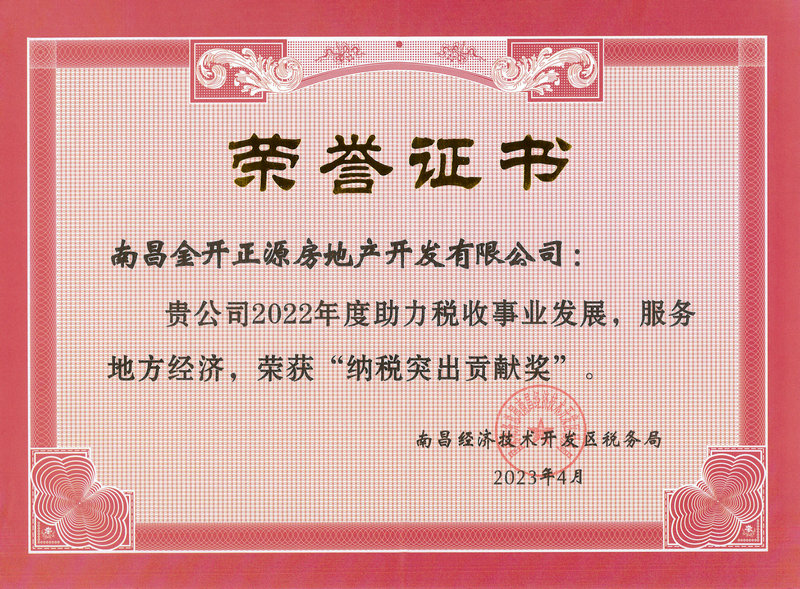 金開資本管理有限公司、南昌金開正源房地產(chǎn)開發(fā)有限公司榮獲“納稅突出貢獻獎”。