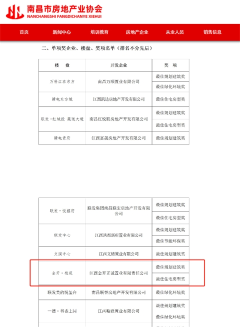 南昌金開集團(tuán)自主開發(fā)的房地產(chǎn)項(xiàng)目——金開·桂苑,在南昌市房協(xié)舉辦的第十二屆"南昌市最佳樓盤"評比中,喜獲"最佳規(guī)劃建筑獎"及"最佳住宅房型獎"。