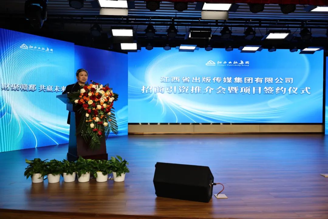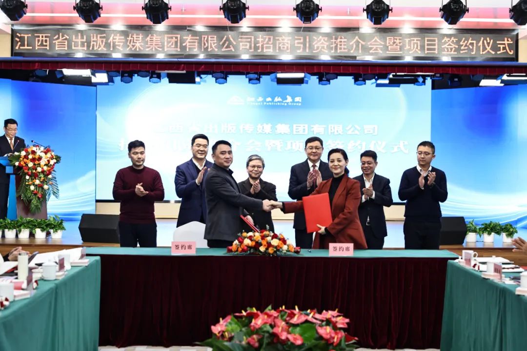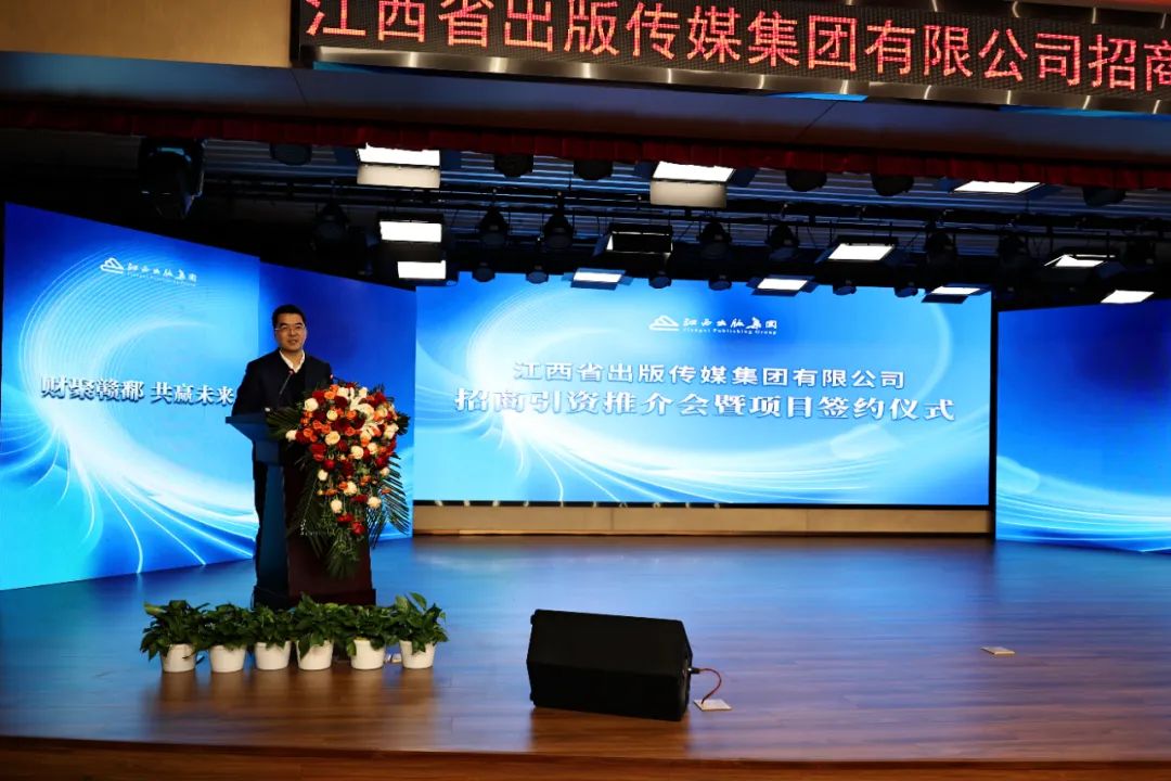 3月1日上午,江西省出版?zhèn)髅郊瘓F(tuán)招商引資推介會暨項目簽約儀式在省出版中心舉行隆重舉行。江西省委宣傳部副部長、省文資辦主任郎道先,江西省出版?zhèn)髅郊瘓F(tuán)有限公司黨委書記、董事長凌衛(wèi)出席并致辭。南昌經(jīng)開區(qū)黨工委委員、管委會副主任賀敏受邀出席并講話。南昌經(jīng)開產(chǎn)控集團(tuán)領(lǐng)導(dǎo)李茶根、彭馳參加。