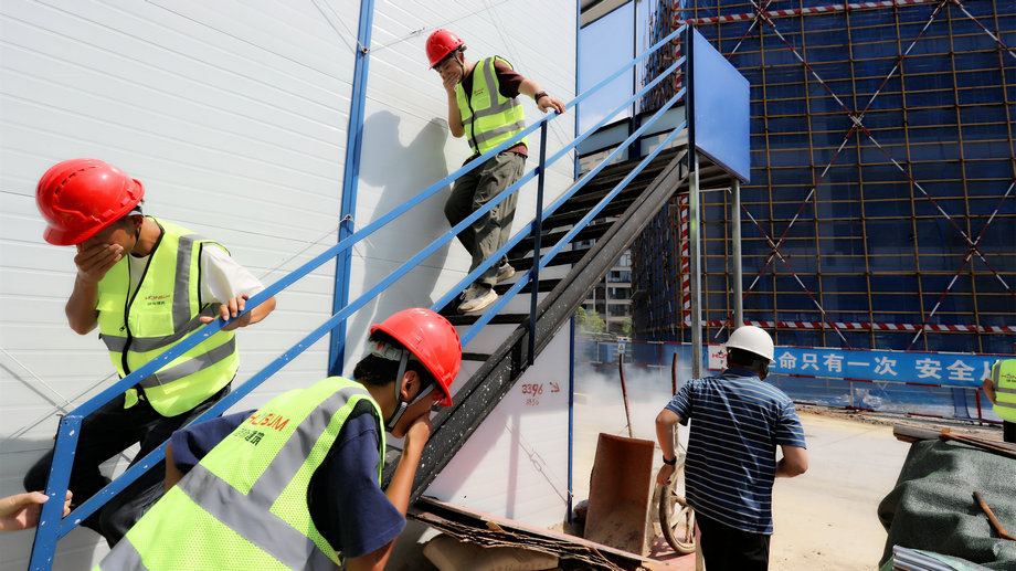 演練過程中,滅火組手持滅火器沖向火源,精準撲滅初期火災;疏散組引導工人彎腰捂鼻,沿安全通道快速撤離,整個流程反應迅速、配合默契,展現(xiàn)了高效的應急能力。