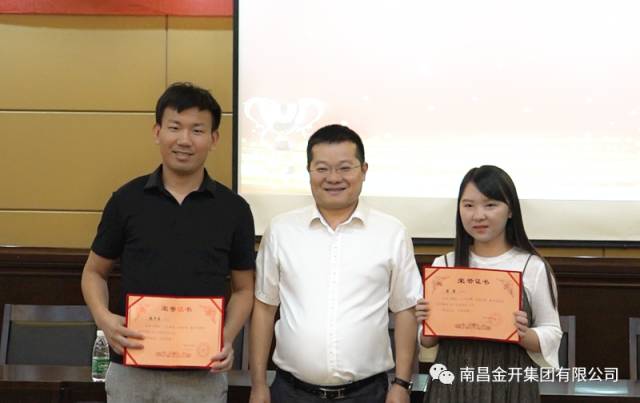 由集團(tuán)副總經(jīng)理胡應(yīng)庚宣讀“關(guān)于表彰2017屆優(yōu)秀實(shí)習(xí)生的決定”,集團(tuán)董事長(zhǎng)胡順明為項(xiàng)目公司張衛(wèi)東、建總公司傅瀟兩名同志頒發(fā)榮譽(yù)證書(shū)。