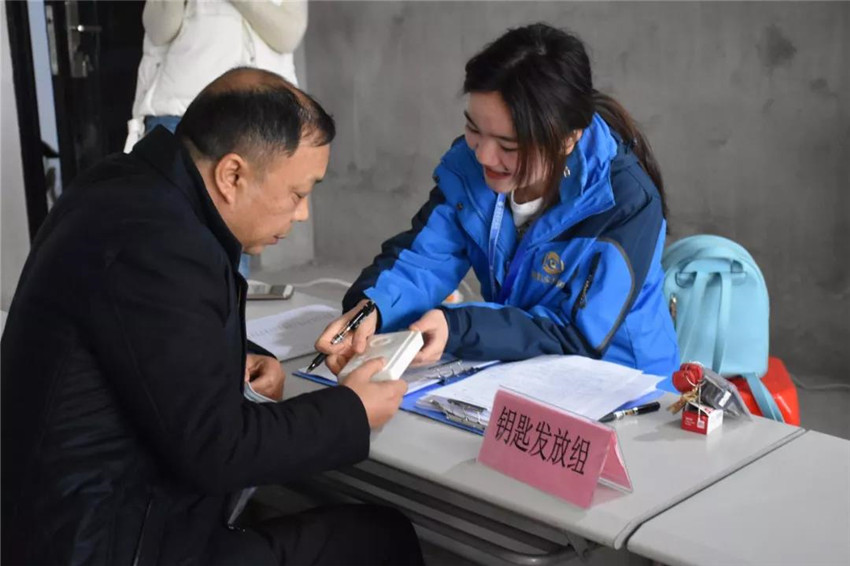 交房當(dāng)天,居民李先生攜帶交房所需證件和資料來到金世紀(jì)安置小區(qū)交房現(xiàn)場繳納了相關(guān)費(fèi)用,并簽訂了各項(xiàng)契約,隨后順利領(lǐng)取了鑰匙。隨即,在驗(yàn)房工作人員的陪同下,他檢查了新房的屋面、墻面、門窗、水電等,確認(rèn)房屋沒有問題后,在《業(yè)主房屋驗(yàn)收交接表》上鄭重地簽上了自己的名字。