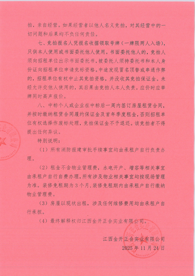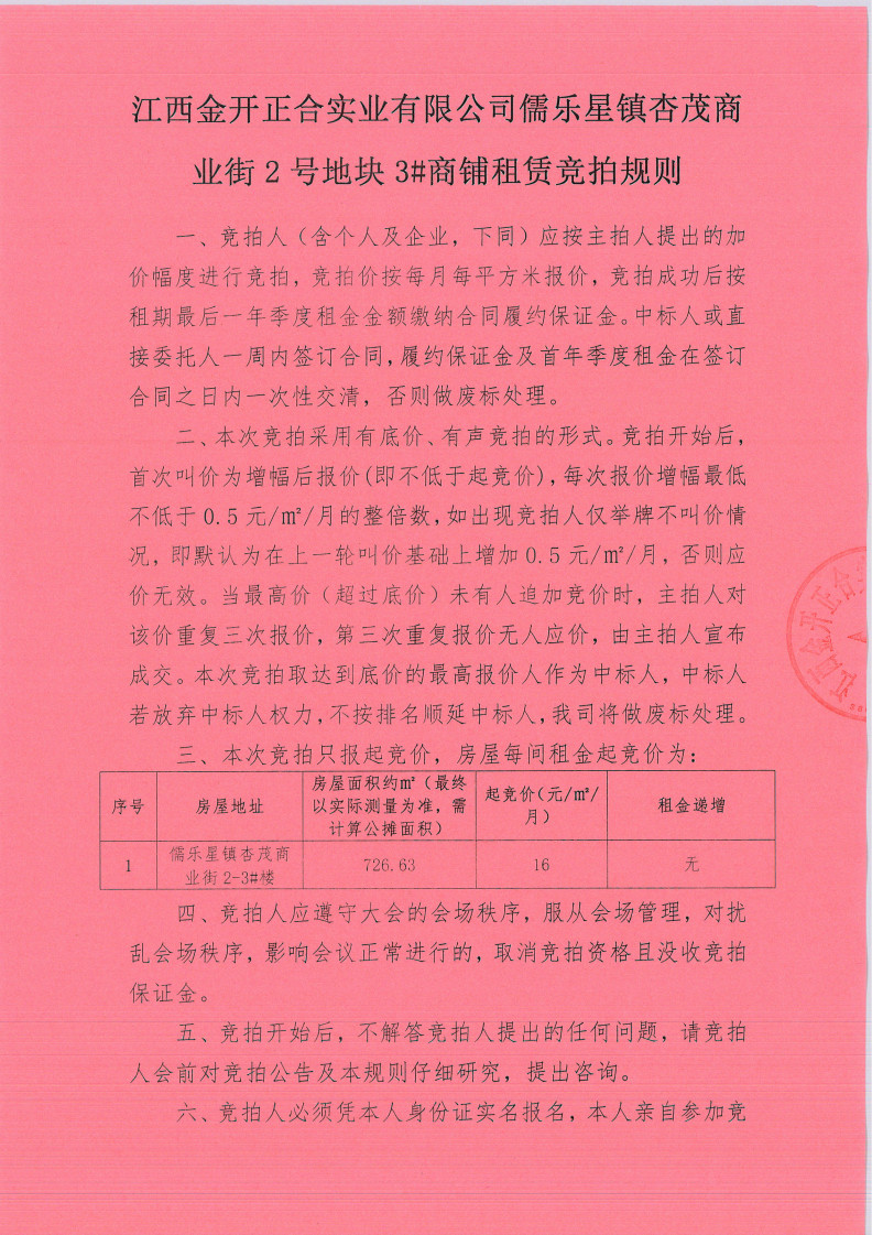 江西金開(kāi)正合實(shí)業(yè)有限公司儒樂(lè)星鎮(zhèn)杏茂商業(yè)街2號(hào)地塊3#商鋪?zhàn)赓U競(jìng)拍公告