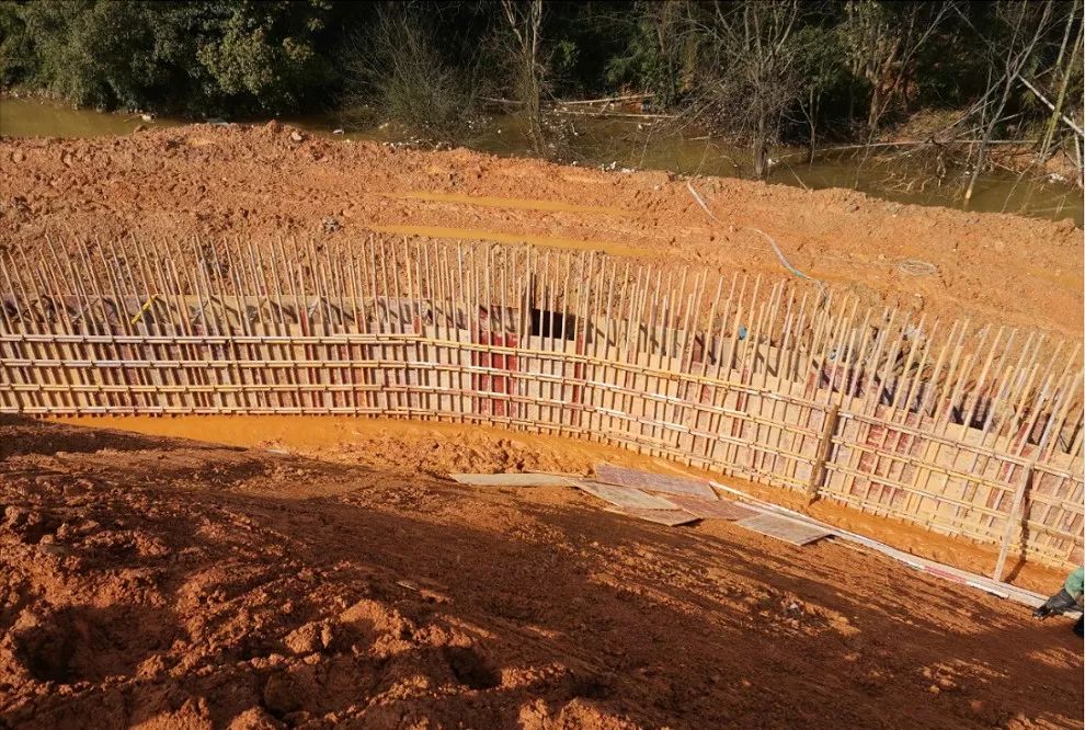 目前,古橋擋土墻、護坡基礎(chǔ)混凝土澆灌已完成,護坡正在制模中,施工方表示待天氣晴好,條件允許的情況下,施工方將做好排水工作,并將護坡工程一次性施工到位。