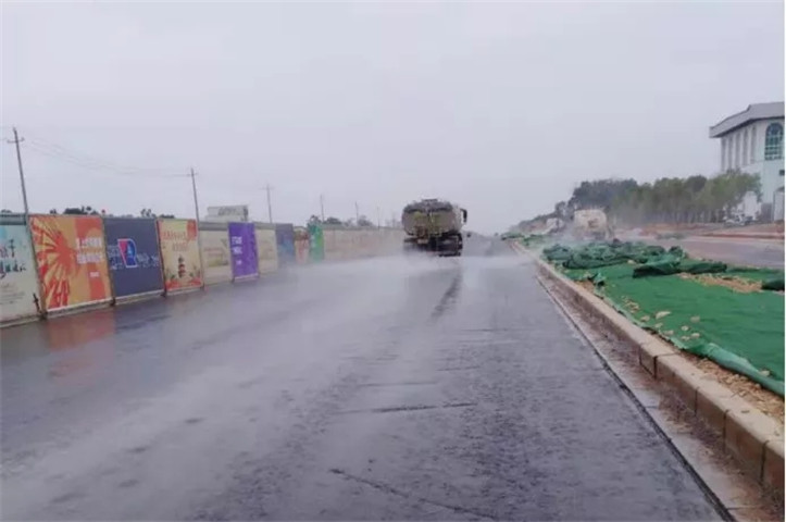 1、雙港大街、黃家湖東路進(jìn)行灑水降塵;