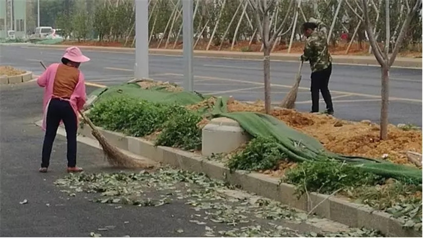 完成大門口外、設(shè)備房、運(yùn)動場裸土覆蓋、清洗路面