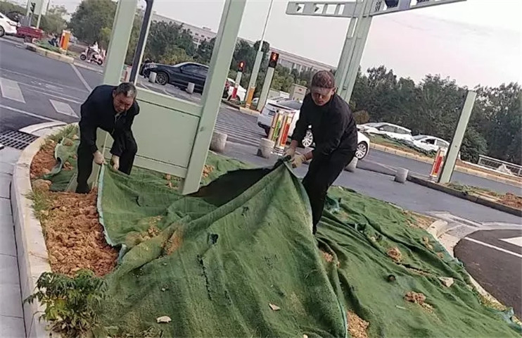 開啟霧炮機(jī)降塵,組織工人清洗道路和種草區(qū)域人工灑水,補(bǔ)草種