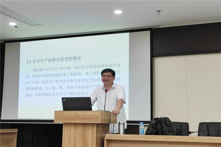 此次培訓(xùn)學(xué)習(xí)會(huì)特邀江西建工集團(tuán)高級(jí)工程師藍(lán)九元擔(dān)任講師,會(huì)上,藍(lán)九元以安全生產(chǎn)真實(shí)案例為切入點(diǎn),結(jié)合自身多年項(xiàng)目安全管理經(jīng)驗(yàn),緊密圍繞《安全生產(chǎn)標(biāo)準(zhǔn)化基本要求》講義課程進(jìn)行了深入解析。