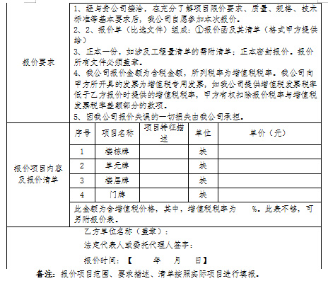 2.2 項(xiàng)目內(nèi)容:樓棟牌、樓層牌、單元牌、門牌項(xiàng)目材