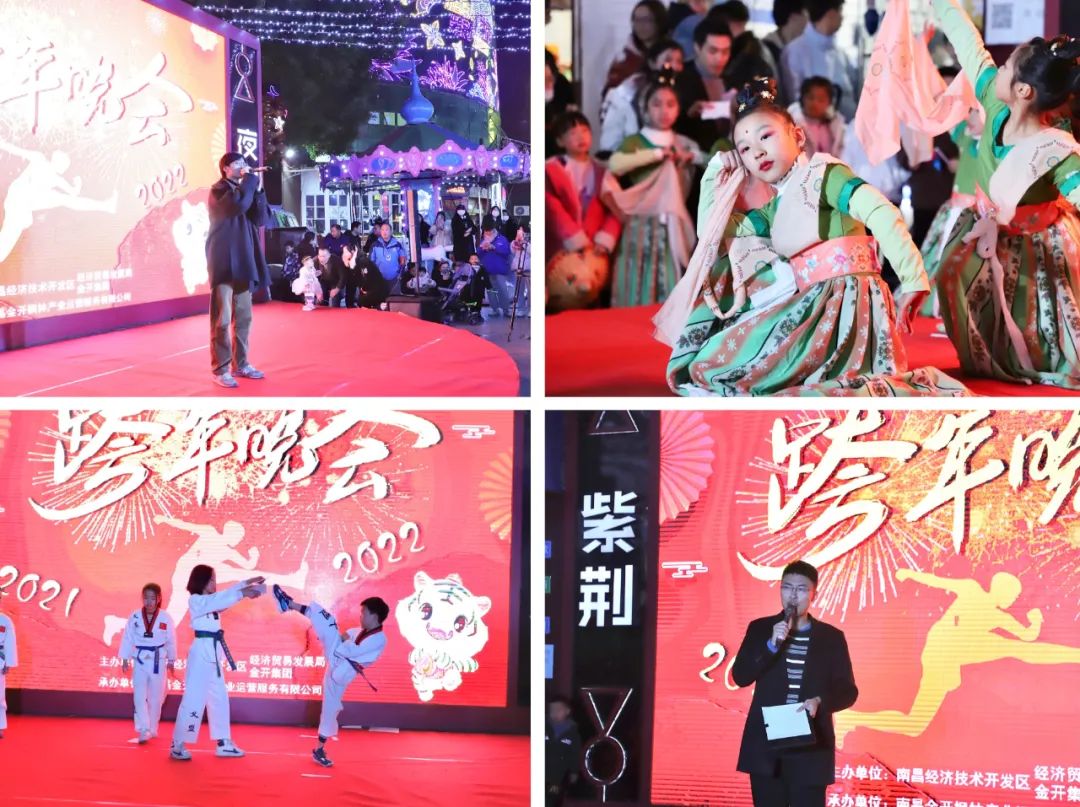 為進一步擦亮紫荊夜市品牌,凝聚人心匯聚力量,展望新年新氣象,2021年12月31日晚,由南昌經(jīng)濟技術(shù)開發(fā)區(qū)經(jīng)濟貿(mào)易發(fā)展局和金開集團主辦,楓林產(chǎn)業(yè)公司承辦的跨年活動在紫荊夜市隆重舉行。本次活動邀請了園區(qū)企業(yè)南昌瑞奧聚成生物技術(shù)有限公司、紫荊夜市商家汝藝舞蹈藝術(shù)中心及義盟跆拳道參與表演節(jié)目。