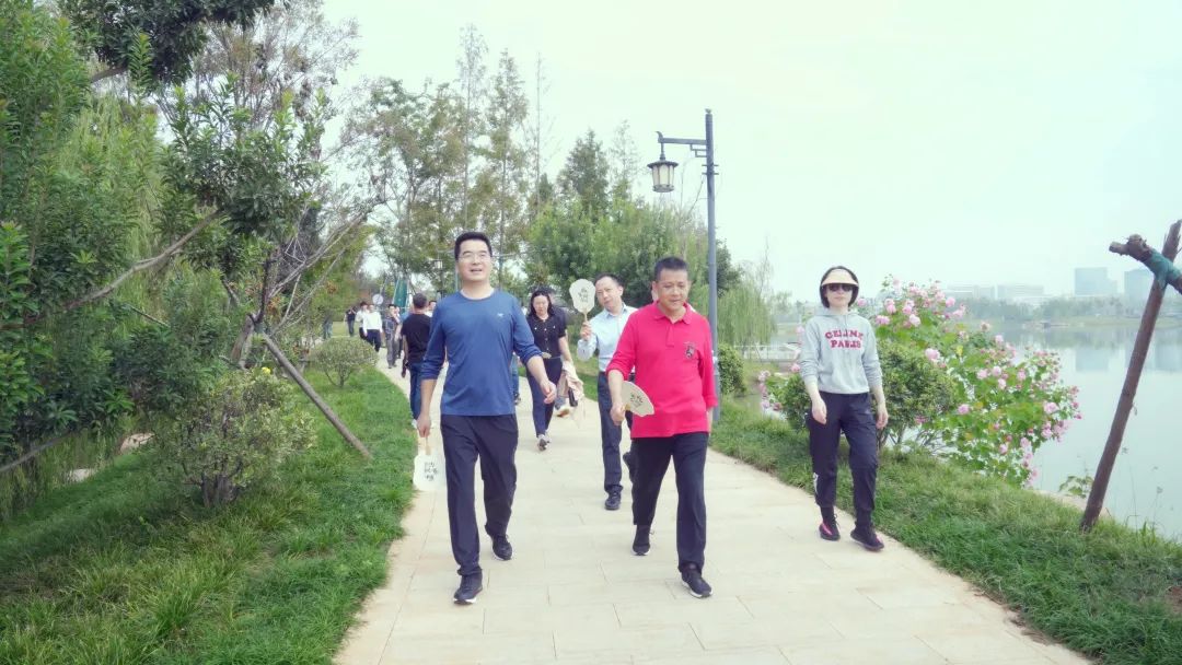 揭牌儀式結束后,俱樂部首場活動——多彩金秋健步走成功舉辦。江西銀行總行行長駱小林,區(qū)黨工委委員、管委會副主任賀敏受邀出席活動,經開產業(yè)控股集團、江西銀行贛江新區(qū)分行、臨空城投,駐區(qū)企業(yè)家共計40余人參加活動。活動中,大家沿著楊家湖公園游步道健步前行,置身于陽光和煦的大自然中,大家不時停下腳步,飽覽自然風光,感受生態(tài)之美;不時觀賞民間傳統(tǒng)技藝,感受人文魅力。大家在輕松愉快的氛圍下互動交流。