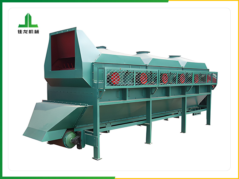 輥式除塵機(jī)又稱羊角篩,它往往多臺(tái)串聯(lián)使用。其轉(zhuǎn)鼓上固定有錐形短棒。轉(zhuǎn)動(dòng)時(shí)把弧形篩板上的草片打散翻動(dòng),并使重物如沙塵、谷料等通過篩板落下。