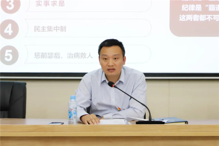 11月9日,金開集團(tuán)機(jī)關(guān)黨支部在保利108會議室開展專題黨課及主題黨日活動?;顒邮紫扔杉瘓F(tuán)黨委委員、紀(jì)委書記方義發(fā)為集團(tuán)機(jī)關(guān)支部全體黨員、預(yù)備黨員、發(fā)展對象及入黨積極分子,集團(tuán)紀(jì)檢監(jiān)察部,集團(tuán)審計辦,金匠置業(yè)等百余人,講授了題為《做一名忠誠干凈擔(dān)當(dāng)?shù)慕痖_人》專題黨課。從領(lǐng)會精神、以案釋紀(jì)和心得體會三個方面,深入解讀《中國共產(chǎn)黨紀(jì)律處分條例》,闡述解釋黨的六大紀(jì)律,通過分析國際國內(nèi)發(fā)展形勢,結(jié)合集團(tuán)十四五發(fā)展目標(biāo)和黨員學(xué)習(xí)方向,點題《做一名忠誠干凈擔(dān)當(dāng)?shù)慕痖_人》。有案例、有數(shù)據(jù)、有時政、有方向,寓意深刻,思想精煉,措施具體,好評如潮。